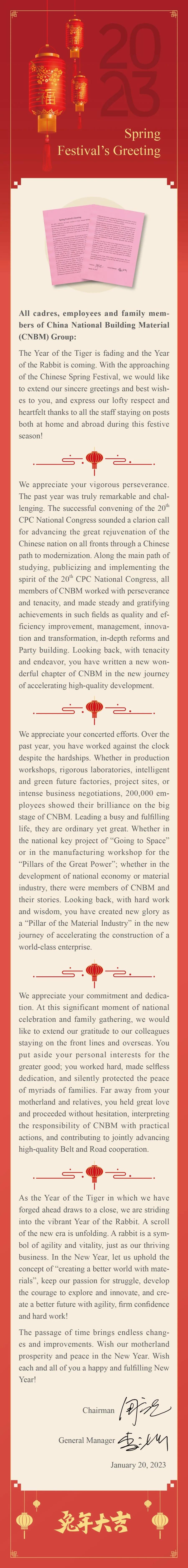 致中國建材集團全體干部員工及家屬的一封信
