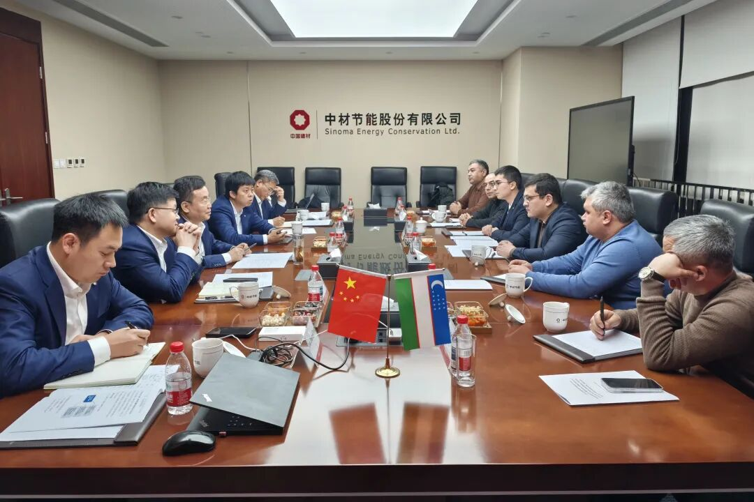 On January 6th, Farruh Samatov, Chairman of the Board of Navoiyazot JSC from Uzbekistan, led a senior delegation on a visit to Sinoma Energy Conservation Ltd., marking the first international business engagement of the new year. The two sides held in-depth discussions on strengthening strategic cooperation in the fields of green energy and energy-saving retrofits. Meng Qinglin, Chairman of Sinoma Energy Conservation Ltd., and Zuo Dayong, Vice President, attended the meeting.