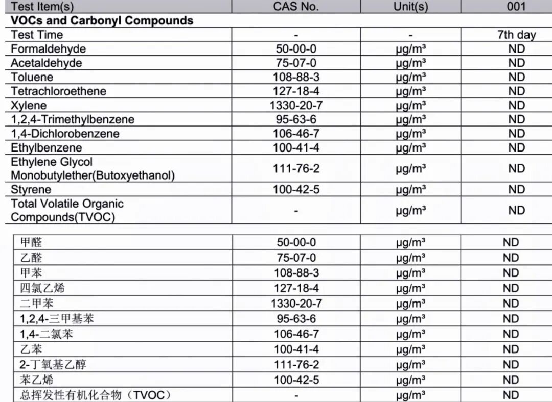 In accordance with the ISO 16000 series standards, this certification involved continuous testing in a sealed chamber simulating real living environments. The tests measured the emission concentrations of ten harmful substances, including total volatile organic compounds (TVOC), formaldehyde, acetaldehyde, toluene, and ethylbenzene. The results for all substances were: ND (Not Detected). This once again verifies the "truly eco-friendly" characteristics of the Hankun? and Keyan? calcium silicate board/fiber cement board series products, which are free from formaldehyde, 100% asbestos-free, and devoid of harmful substances such as benzene.